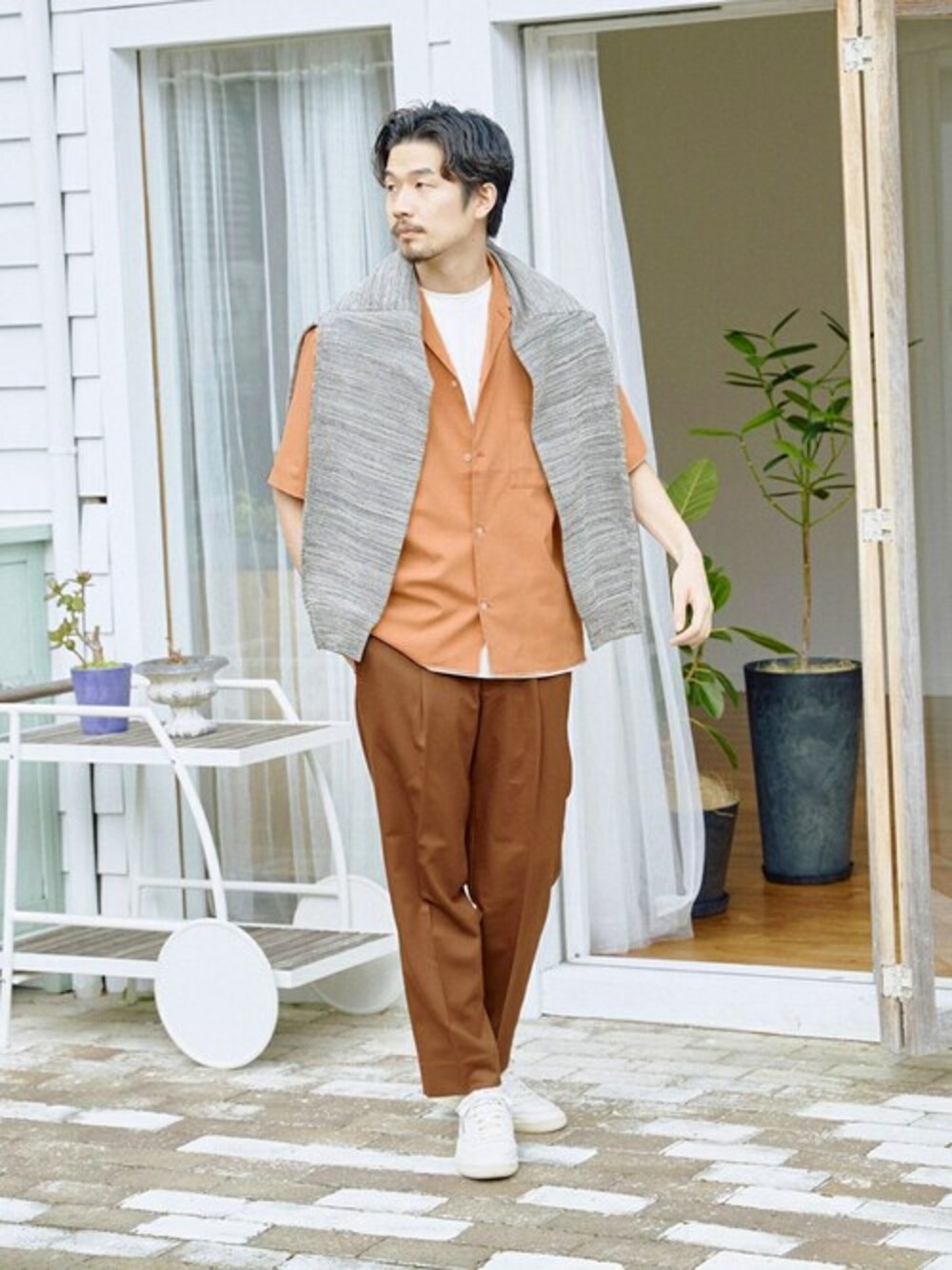 【Reflax / リフラクス】オープンカラーシャツ "軽さと動きやすさを兼ね備えたオープンカラーシャツ” ストレッチ素材で着心地抜群。縮みが少なく、マシーンウォッシュも可能です。リネンのようなふしもありますがリネンと違い、チクチクすることもなくドライな肌触りです。 麻の様なナチュラル感とドライな風合いのリネンライクファブリックで、シワにもなりにくく、毛羽も出にくい多機能素材です。軽さもあるため、快適に着用頂けます。 ベーシックデザインで幅広いスタイリングで活躍する、新感覚オープンカラーシャツです。レイヤード次第で、羽織はもちろんインナーとしても活躍する仕上がりです。 組下:23030312900210【Reflax / リフラクス】スリムパンツ ********************** ・透け感:ややあり ・裏地:なし ・伸縮性:ややあり ・光沢感:なし ・生地の厚さ: ふつう **********************