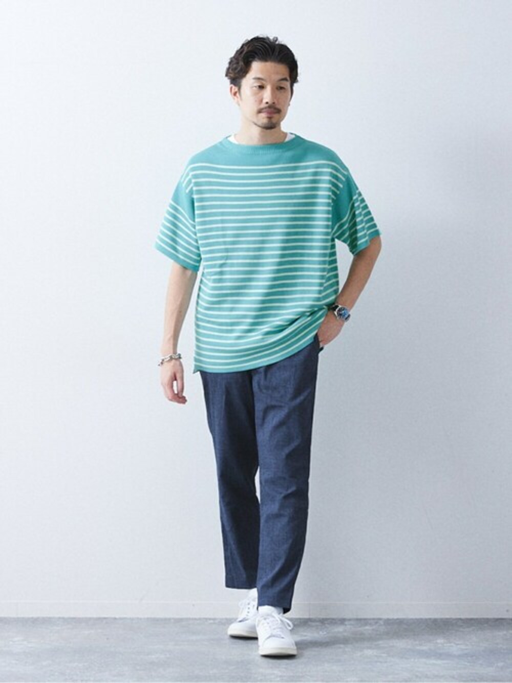 417 official(417 EC)のTシャツ/カットソー「リネンライクMVS ボーダーニット Tシャツ」を使ったコーディネート