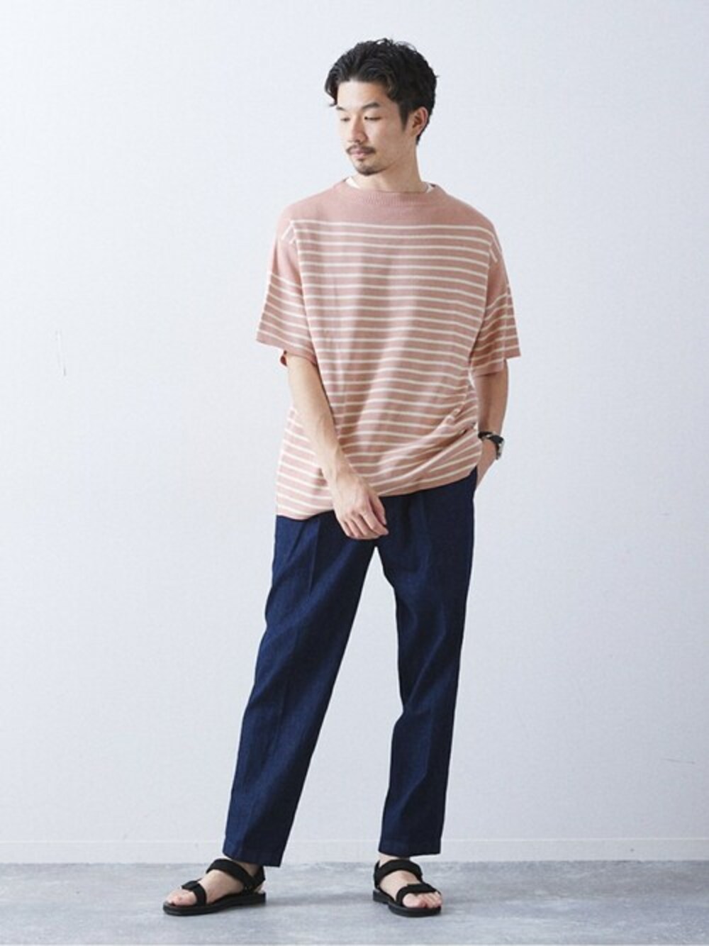 417 official(417 EC)のTシャツ/カットソー「リネンライクMVS ボーダーニット Tシャツ」を使ったコーディネート