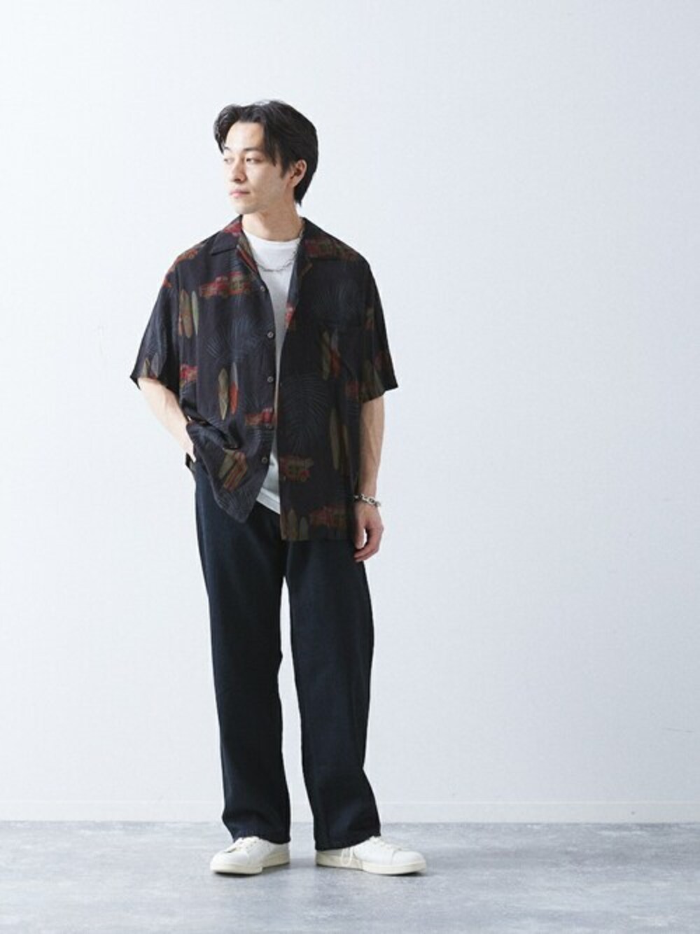 <TWO PALMS × 417EDIFICE> 全てオリジナル柄の生地を使用し、ホノルルのダウンタウンで生産される、正真正銘のMade in USA ハワイ製の別注アイテム。 滑らかなレーヨン素材のボディは、正統派のアロハで確かな品質とバリエーションの豊富さが魅力のブランドならではの仕上がり。 羽織りとしては勿論、インナーとしてもレイヤードにアクセントを与える、必携のシャツです。 ※本商品は製品染めを施しているため、実寸サイズに僅かながら個体差がございます。  サイズスペックは目安値としてご参照くださいますよう、予めご了承下さいませ。 【TWO PALMS HAWAIIAN WEAR / トゥーパームス ハワイアン ウェア】 「TWO PALMS」は、1982年にスタートした、ハワイアンウェアブランド。ホノルルのダウンタウンで生産される、正真正銘のMADE IN HAWAII。確かな品質とバリエーションの豊富さ、アロハシャツとしては、とてもバリュー感のあるプライスが魅力的です。 ********************** 透け感:なし 裏地:なし 伸縮性:ややあり 光沢感:ややあり 生地の厚さ:薄い **********************