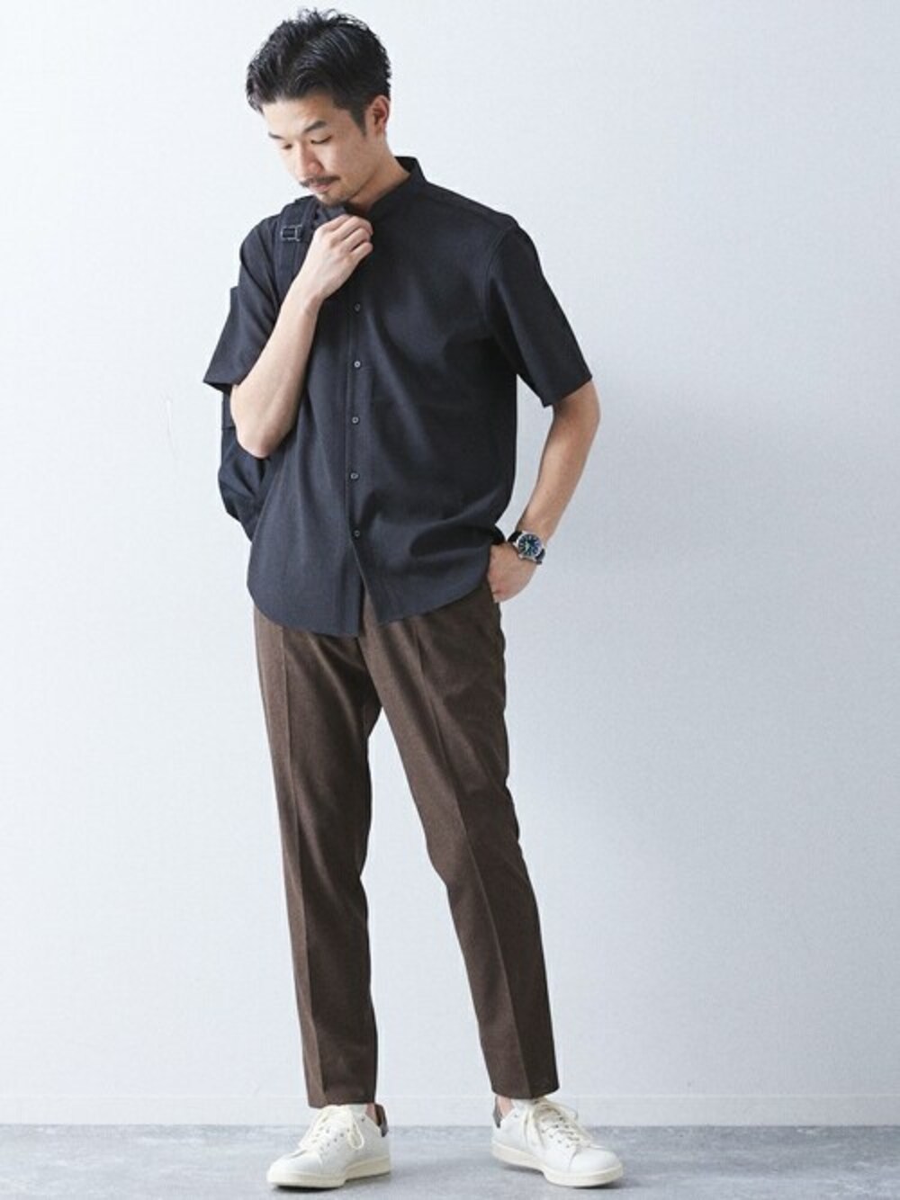 417 official(417 EC)のシャツ/ブラウス「"吸水速乾&イージーケア" シアサッカー ワンピースバンドカラー S/S シャツ」を使ったコーディネート