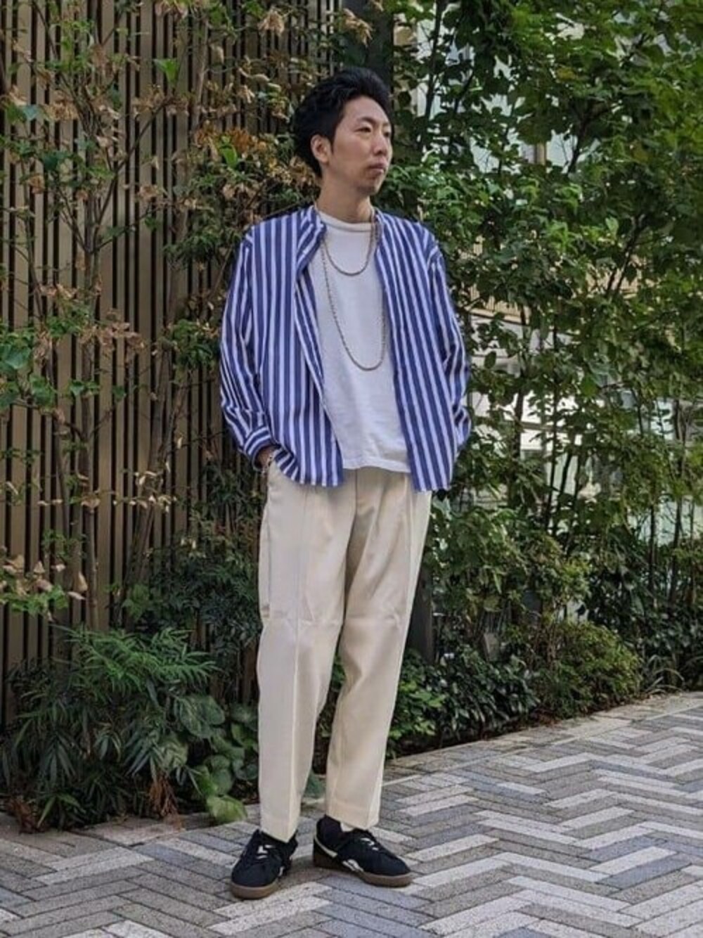 【LE JAPON】ノーカラーシャツ 国内屈指の繊維工場に依頼し作成されたシャツシリーズ 生地は非常になめらかで柔らかく着心地抜群 まだまだ汗ばむ時期にはもってこいのシャツです◎ 身長 : 185㎝ / 普段サイズ :LorXL / 着用サイズ : L :ややゆったりめ。 素材感 : 柔らかい。 着心地 : ゆったりとしていて動き易い、又生地が滑らかで肌触りが良い。