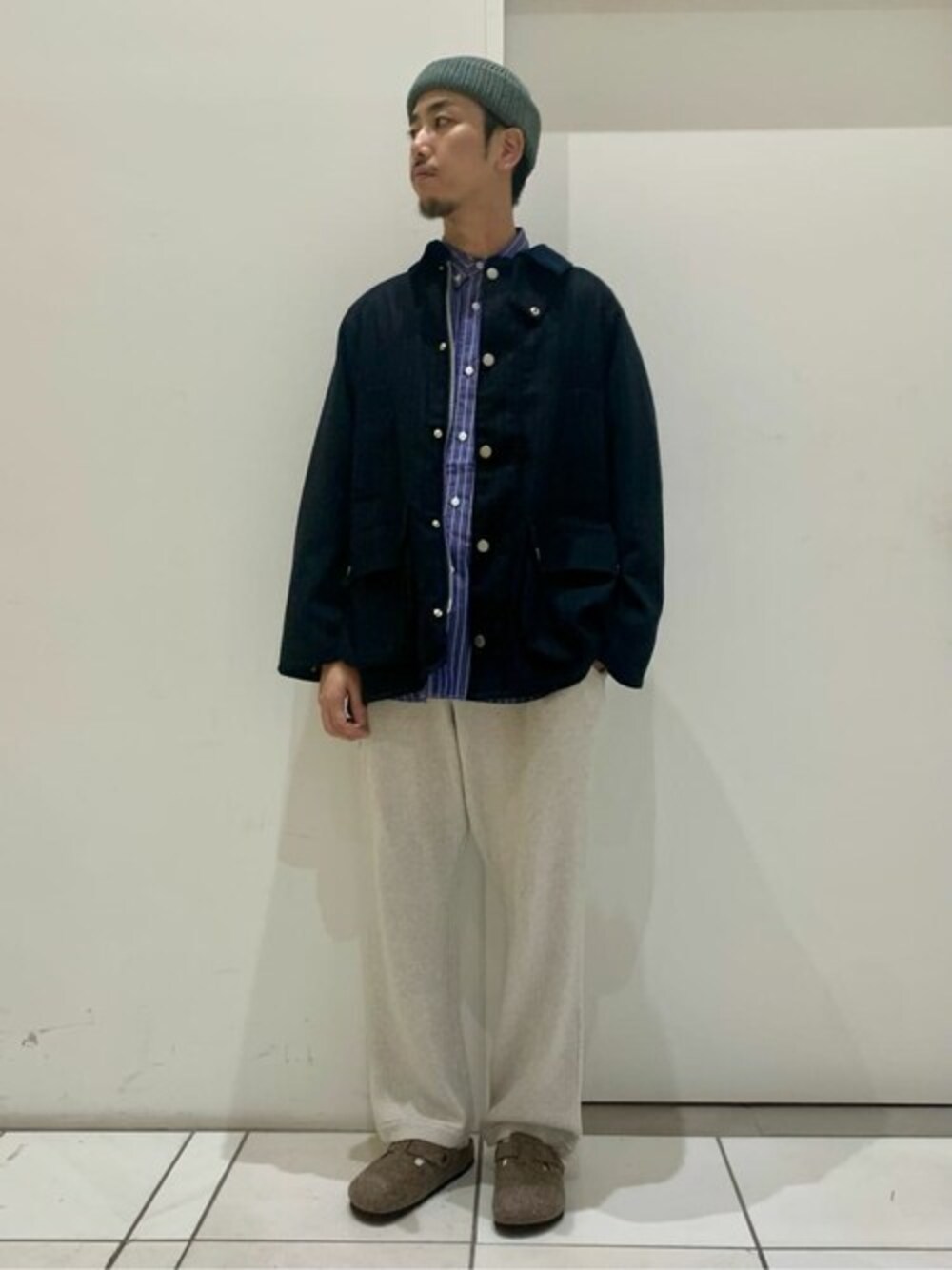 "Barbour×417" 別注OSBEDALE”CORDURAcombatwool” ”CORDURAcombatwool” ミリタリーウェアでも使用されるほどの耐久性があるインビスタ社の素材「CORDURA」(コーデュラ)のナイロンとウールを混紡した生地「CORDURACOMBATWOOLFABRIC」は、摩擦への耐久性が高い一着です。 ゆるっとしたサイズ感が特徴でストライプ柄の真面目さをいい感じに中和してくれます。 めちゃくちゃカッコいいので是非👍👍👍