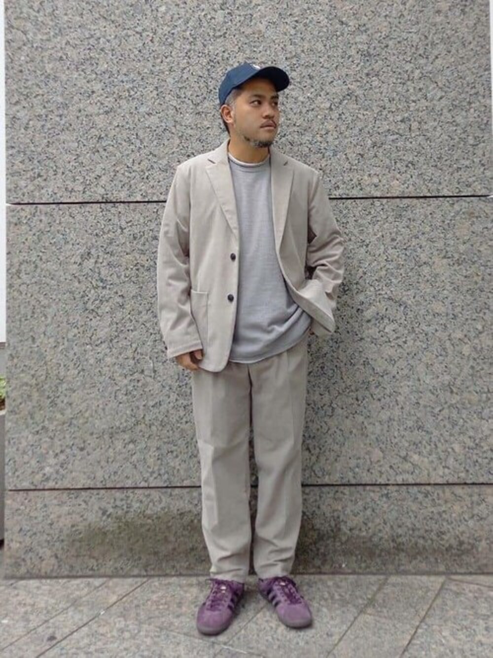 【TOPS & PANTS:CORDUROY 2B JK &CORDUROY easy】 ◯着用カラー:グレー ◯着用サイズ:L ◯サイズ感:ややゆったり ◯素材感:柔らかく、肌触りも良い ◎スタイリングポイント◎ グレーカラーのコーデュロイセットアップを軸に、カジュアルな装いのスタイリング。 インナーはセットアップと同系色のパイル生地のニットをチョイスし、程よいリラックス感を取り入れました。 足元はカラーリングが特徴的なスニーカーを合わせ、セットアップスタイリングのはずしに。