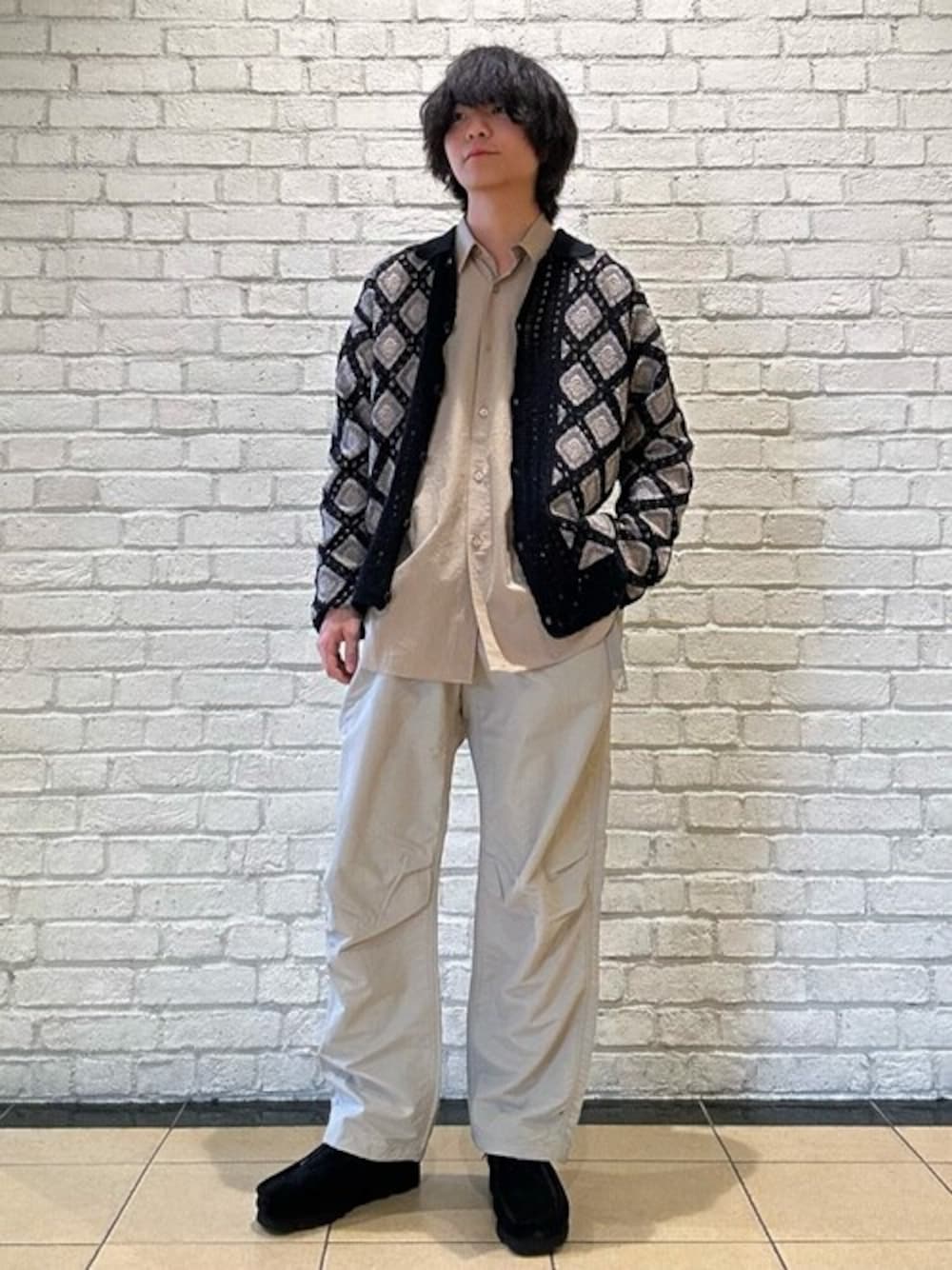 クロシェニット ポロカーディガン 普段サイズ:M/着用サイズ:M/体型:痩せ型/サイズ感:ややゆったり クロシェのニットポロの全体で配色を拾うことにより統一感のあるコーディネートに仕上げました。 雰囲気ある、立体的なクロシェニットの良さはそのままにボタンと襟を追加する事で、スタイリングの幅が広がります。ゆったりとしたシルエットで単調なコーディネートになりやすい季節に特におすすめのアイテムに仕上がっています。