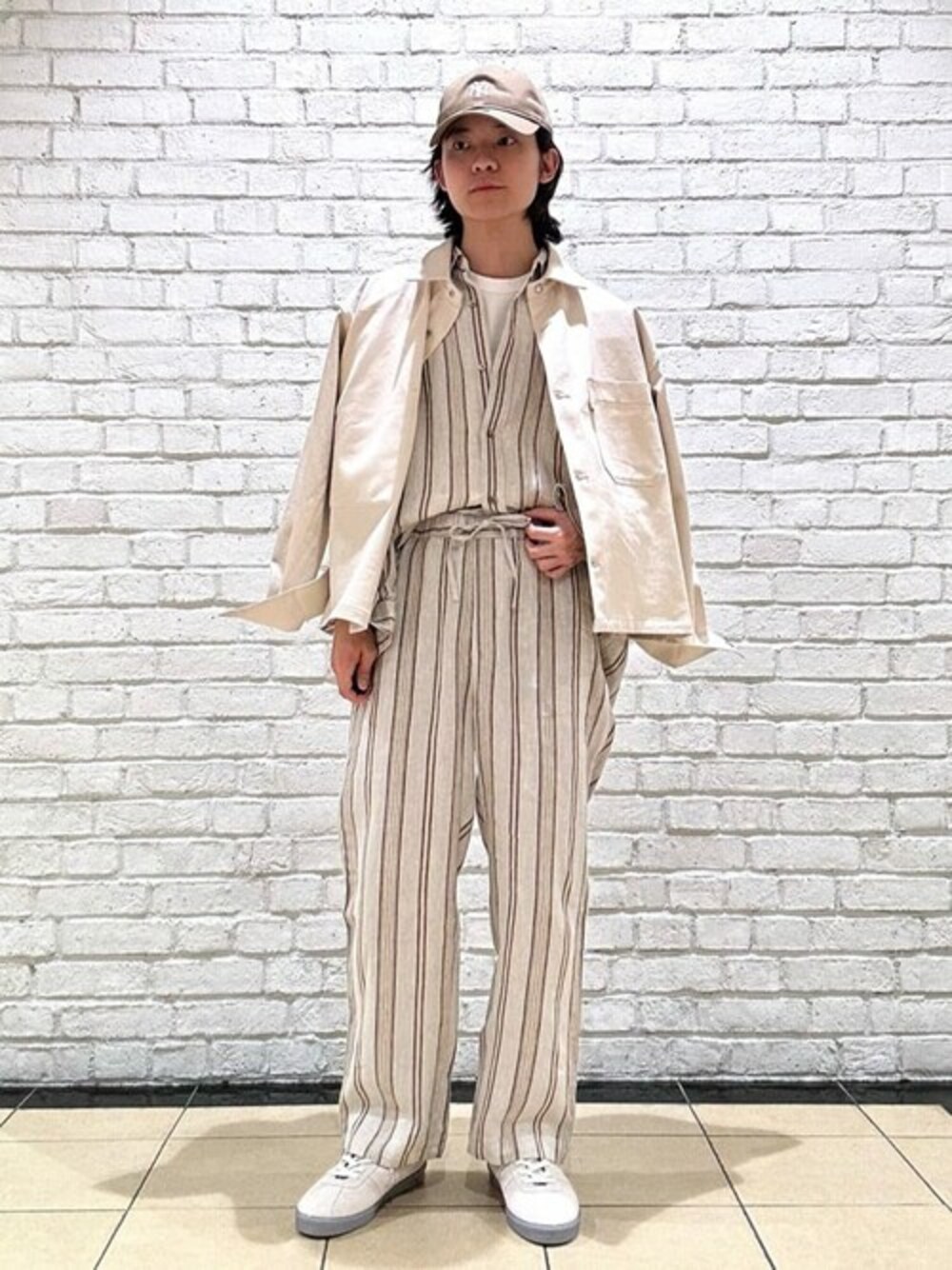 NORMANDY LINEN / ノルマンディリネン シャツ 普段サイズ:M/着用サイズ:M/体型:痩せ型/サイズ感:ややゆったり リネンのストライプのセットアップにデニムのシャツを肩がけをしたカジュアルなコーデを色の統一感で緩和した大人の雰囲気があるコーデに仕上げました。 ”ノルマンディリネンを採用したレギュラーカラーシャツ” ■デザイン 毎シーズン欠かせないリネンアイテム。ゆとりのあるシルエットで、リラックスした着心地が魅力。透け感のコントラストが際立つカラーリングをご用意しました。 ■素材 フランス北西部ノルマンディ地方のリネンを原料としたノルマンディリネンを使用。しなやかで上品な風合いと肌離れの良いドライタッチな着心地は、シーズンスタイルに最適です。