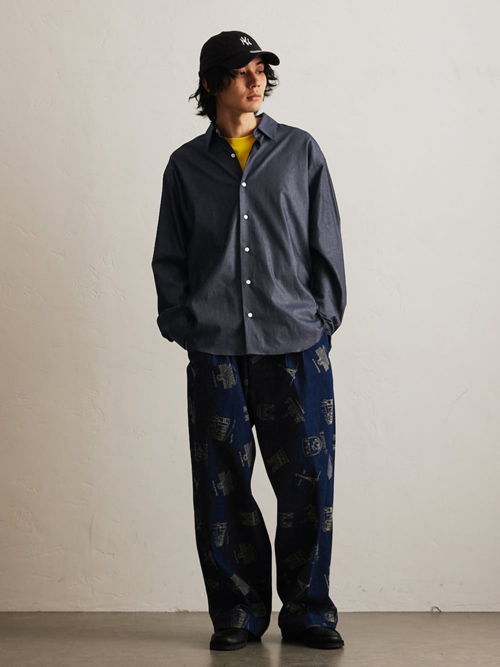 【LE JAPON】 Akita レギュラーカラーデニム 全体的に程良いゆとりをもたせたシルエットでモダンらしさを提案しています。フロント釦を閉めてパンツイン、フロントを空けてパンツアウト等の様々なコーディネイトをお楽しみいただける万能シャツ。 1枚ではもちろん、ジャケットなどとのレイヤードスタイルにも活躍します。カジュアルな合わせはもちろん、スラックスなどモードなテイストにもおすすめ。テイストやシーズンを問わず長くご愛用いただける万能シャツです。