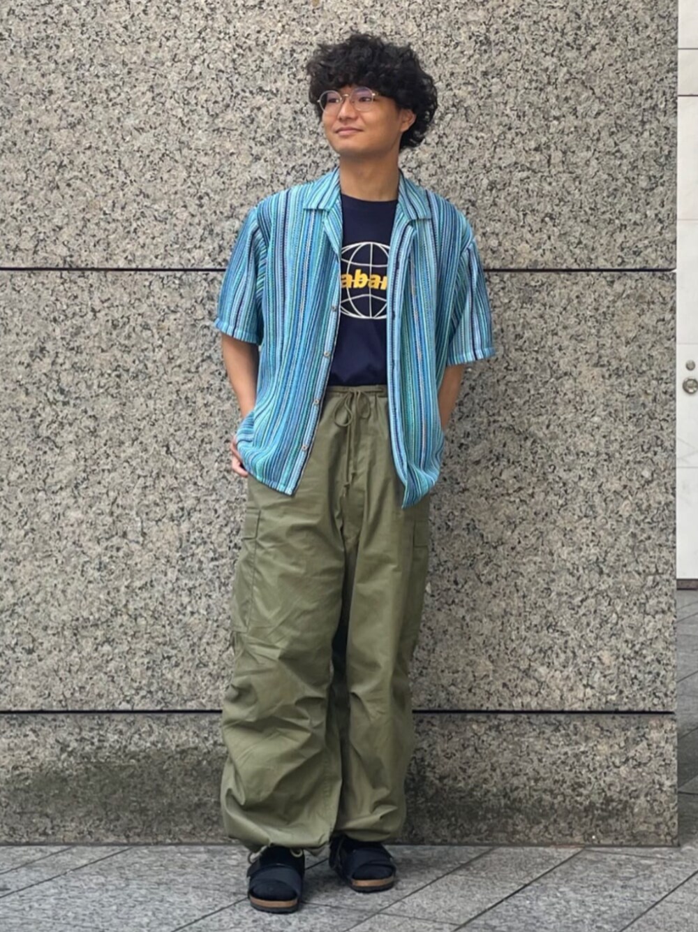 身長:169cm 体型:普通 普段サイズ: TOPS:S BOTTOMS:S SHOES:25cm 【商品名】ラッセル オープンカラーシャツ サイズ感:ゆったり 【商品名】キャバレーポバール 417別注 OTシャツ