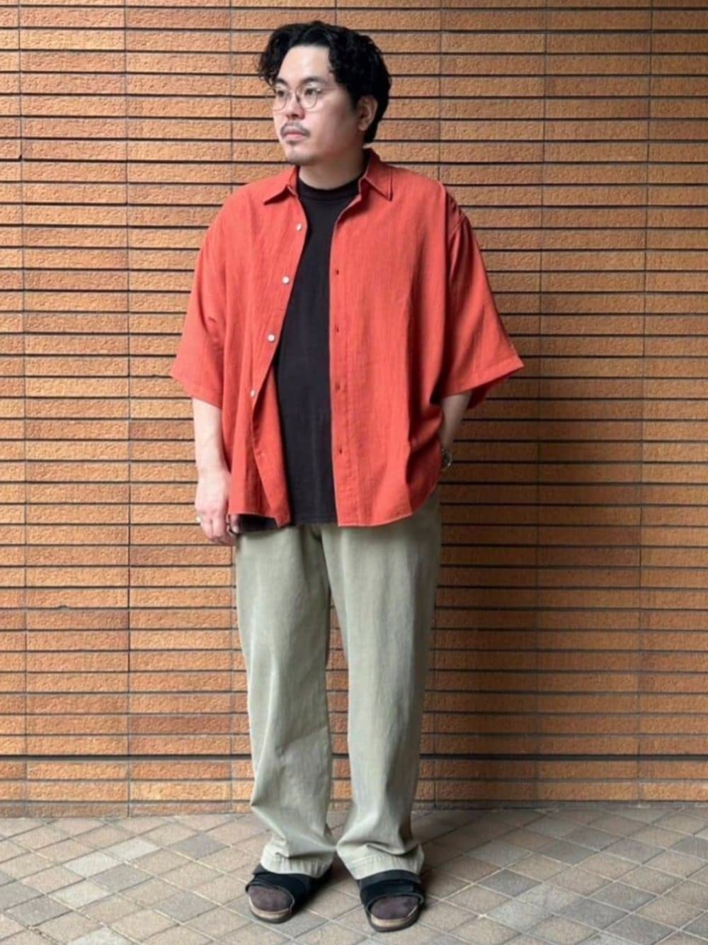【Ry Ny Crepe SH 】 綺麗めカジュアルでも、夏なので明るい色味で少しリゾート感も意識してみました! 普段サイズ:L 着用サイズ:L サイズ感:ゆったり 生地感:とろみのある生地感 着心地:肌触り良く涼しい