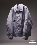 ”WASHER NYLON” MK3ブルゾン 【畳める、水を弾く、軽い、伸びる】豊富な機能性を持ったアイテム。 ■素材 伸縮性のある素材はストレスフリーで着用頂けるのが魅力です。生地は薄手で細かなワッシャー仕上げ、ストレッチ、軽量、ドライタッチナイロン素材を採用しています。少しシボ感のある表情にする事で、通常のブルゾンと差をつけられます。 ■デザイン イギリス軍の代表作であるMK3をベースとしました。着座を想定した横広の身幅に対して短丈なシルエット、八の字ZIP 、斜めについたサイドポケット等のスタイリッシュなディティールもポイント。テックファッションに落とし込んだ唯一無二な仕上がりです。シックなスタイルからアクセントをつけたスタイリングまで幅広い着こなしに対応します。 英国王立空軍、RAFにおいて通称“ショートアビエータージャケット”として知られる、イギリス軍を代表する非常に有名なフライトジャケットです。誕生から40 年近くマイナーチェンジし採用され続けました。前記した通り、着座を想定したシルエットになっていて身幅に対して着丈が短く、今のアウターのトレンドシルエットです。 現物を参考にしつつ、シガーポケットやフロントのボタン等はアレンジを加えソリッドな印象にしました。首元にさりげなく入れたロゴもポイントです。