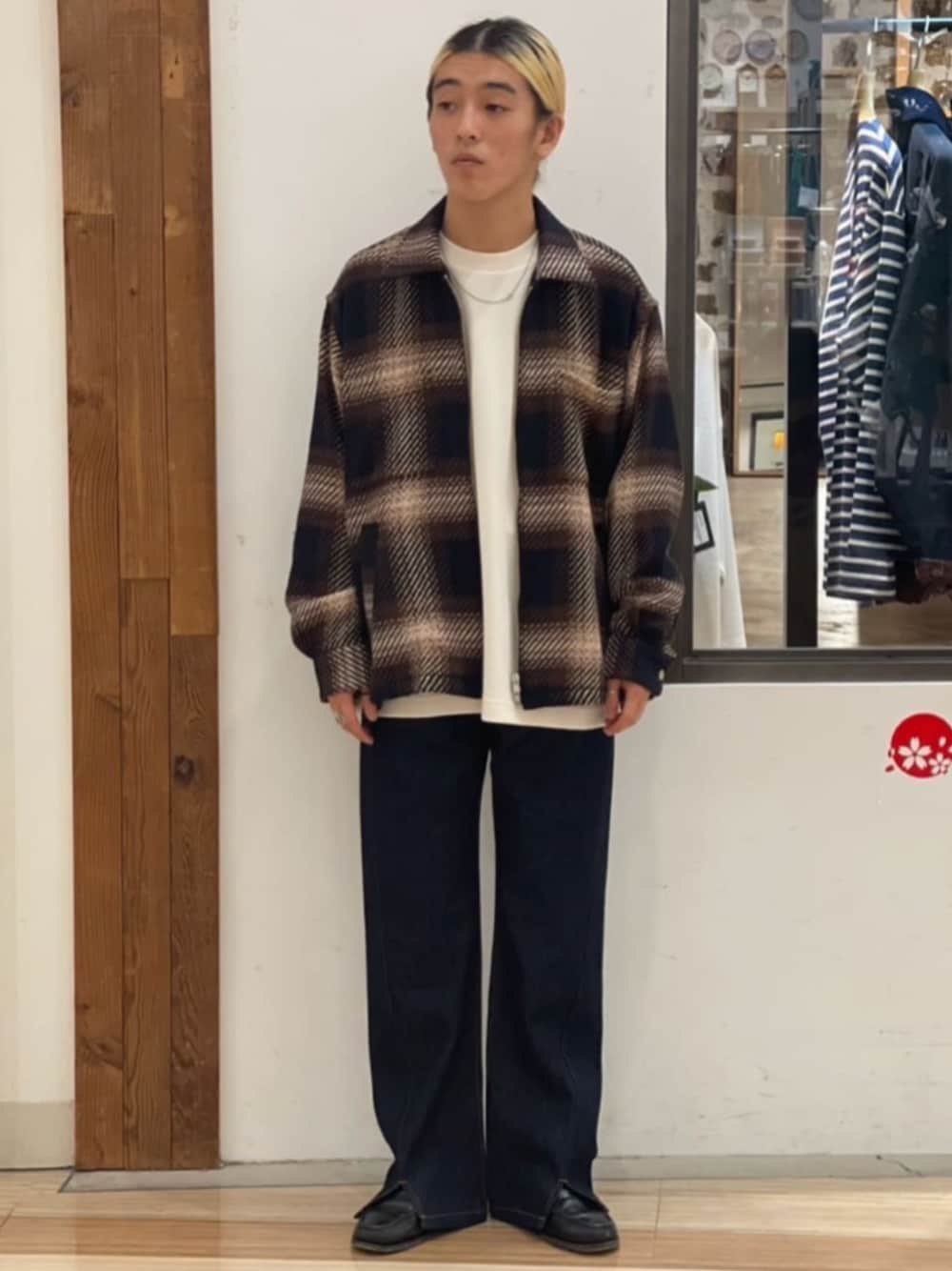 TWEED チェックジップシャツ ゙存在感のあるデザインに仕上がったチェックシャツ゛ トレンド感のあるゆとりあるシルエットに落とし込んだシャツ。 ツイードのあたたかみと高級感ある素材感がスタイリングにアクセントをもたらします。