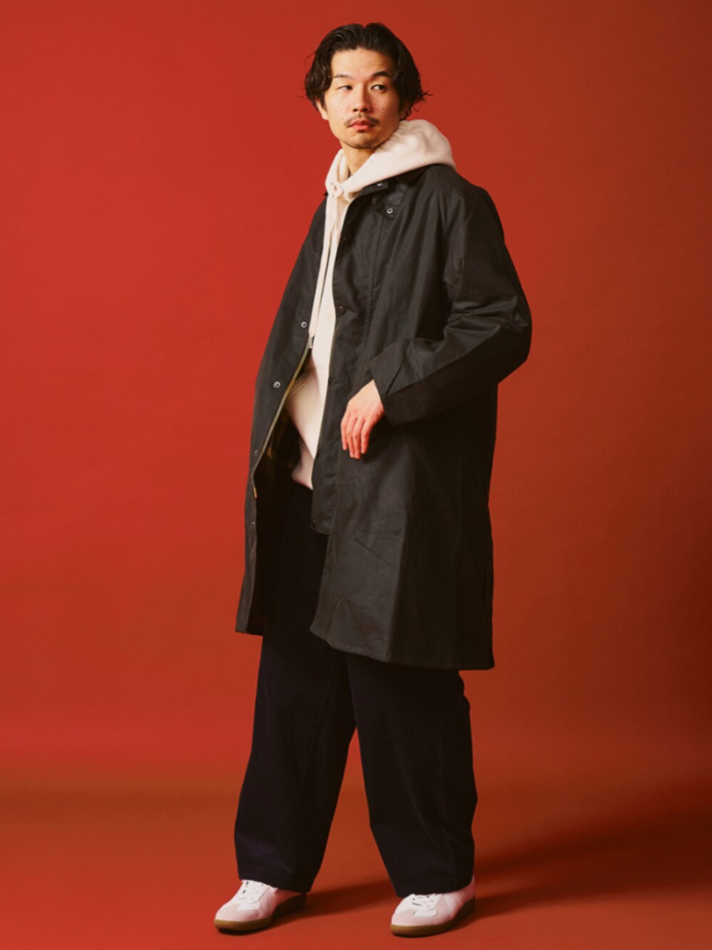 Barbour / バブアー modified exmoor wax coat バブアー モディファイド エクスモア オイルドロングコート 乗馬用コートとして開発された「Burghley/バーレー」ベースに膝まで丈を詰めてアレンジを加えたユニセックスモデル"MODIFIED EXMOOR" ゆったりとしたオーバーサイズ、フロントはスラッシュポケットのみのミニマルなデザイン。 ユニセックスでお使いいただける、非常に雰囲気のある1着です。