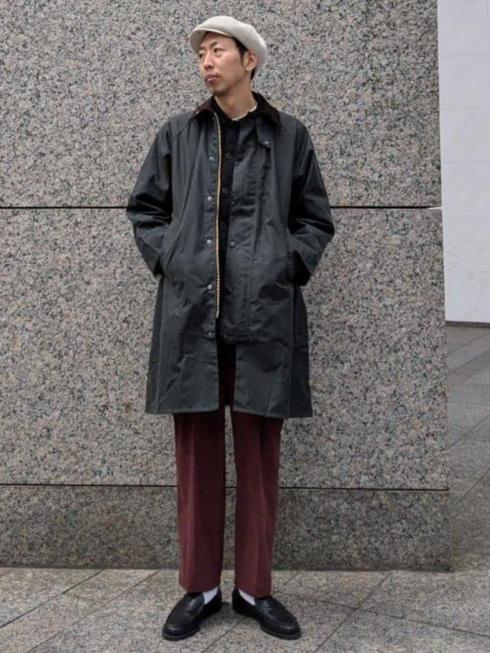 【Barbour exmoor 】 ミドルレングスの着回ししやすいコートタイプ。 サイズにゆとりもあり肉厚なアイテムを中にいれても大丈夫なサイズ感◎ Barbourらしく、ブリティッシュテイストでまとめました。 身長 : 185㎝ / 普段サイズ :LorXL / 着用サイズ : 040 :ややゆったりめ。 素材感 : 柔らかい。 着心地 : ゆったりとしていて動き易い。