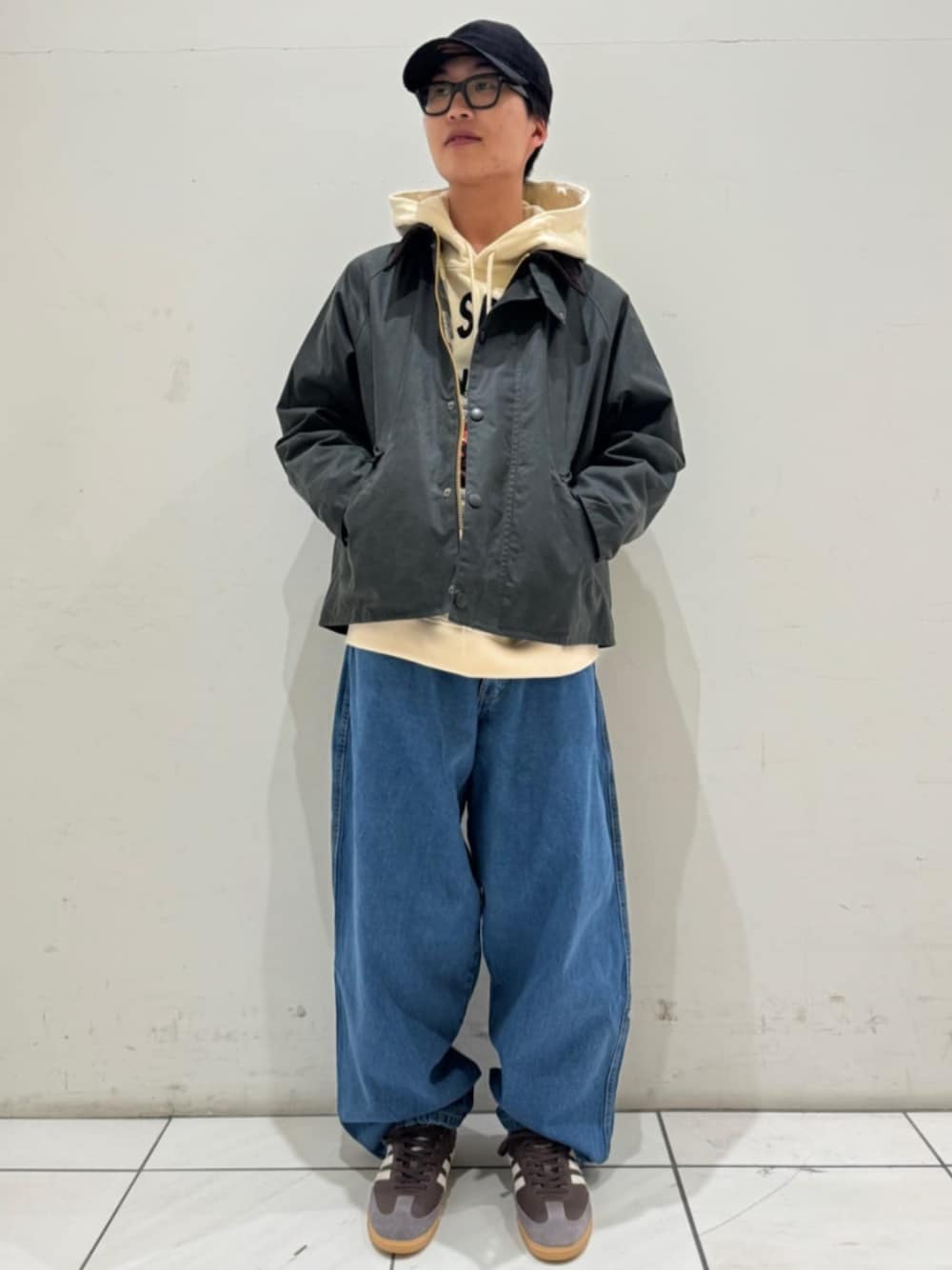 Barbour / バブアー os transport wax jacket 身長:171センチ / 普段サイズ:M/ 着用サイズ:38 サイズ感:ややゆったり 素材感:表側:コットン100% (オイルコットン)裏側:コットン100% トランスポートジャケット 羽織りやすく軽快な、ショート丈ジャケット。 可動域の広いラグランスリーブ、フロントのハンドウォーマーポケット、バックの内側に配された風除けのパーツなどの仕様はそのままに設定サイズを2サイズアップすることで、全体的にオーバーサイズ仕様のフィッティングに調整。 身幅や肩回りにはボリュームがあり、ゆったりと丸みを帯びたシルエットが特徴的。着丈が短い為、オーバーサイズになり過ぎず全体的にまとまりのあるシルエットになっています。