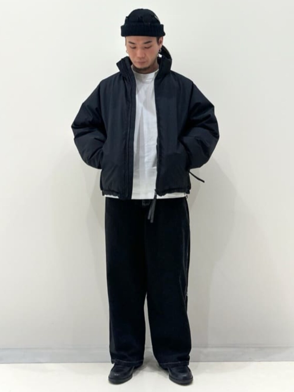 Foxfire / フォックスファイア 417別注 GORE-TEX ダウンブルゾン 削ぎ落したデザイン、計算されたシルエットが特徴の一着。身幅にゆとりを持たせた、丸みのあるショートシルエットに仕上げています。 ダークブラウンで仕上げたGORE-TEXロゴも、馴染むようなデザインに仕上げています。手袋をした状態でも開閉しやすい、長めのスライダータブを採用。デザイン性、機能性もあるディティールです。 素材:GORE TEX Infinium 2レイヤー 700FPダウン 身長:170cm/体型:普通/普段サイズ:SorM/着用サイズ:M サイズ感:オーバサイズ 素材感:ゴアテックス 着心地:軽くて温かい