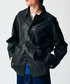 ビンテージのカバーオールをベースにしたゆったりとしたシルエットがポイント。 シボの入った柔らかいシープレザーの風合いのようなフェイクレザーを使用しています。製品加工にてふっくらとした風合いに仕上げ、本物のような風合いとイージーケアがポイントのアイテムです。 やや短丈に仕上げ、メリハリのあるシルエットです。ラグランスリーブで丸みのあるシルエット、なじみの良い肩周りもポイント。 身長:170cm/体型:普通/普段サイズ:SorM/着用サイズ:M サイズ感:オーバーサイズ 素材感:フェイクレザー 着心地:ゆとりがあり着やすい