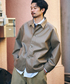 ビンテージのカバーオールをベースにしたゆったりとしたシルエットがポイント。 シボの入った柔らかいシープレザーの風合いのようなフェイクレザーを使用しています。製品加工にてふっくらとした風合いに仕上げ、本物のような風合いとイージーケアがポイントのアイテムです。