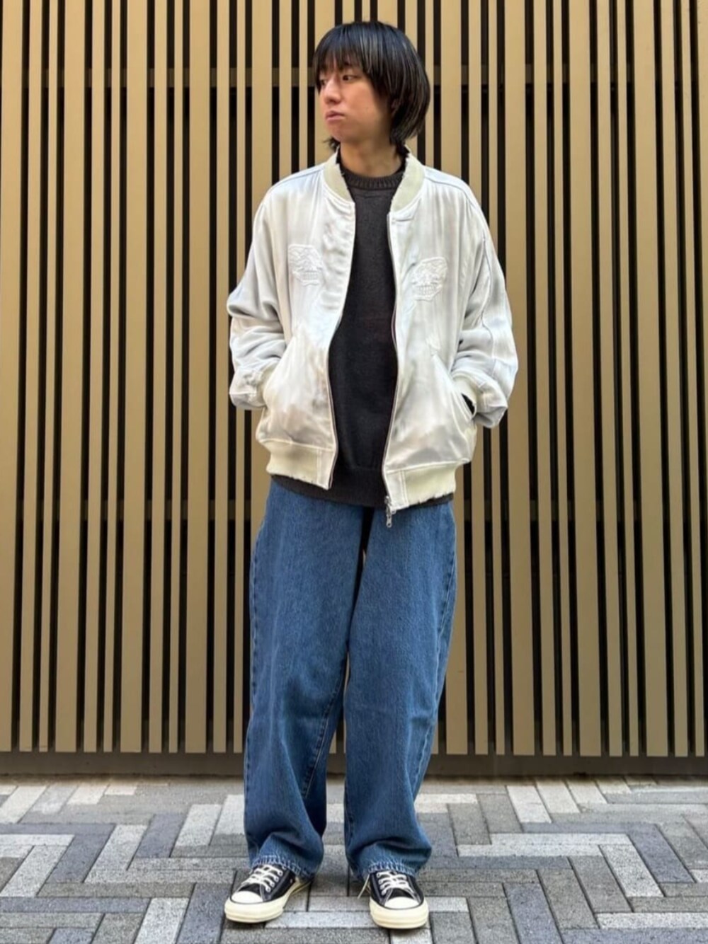 LE JAPON NIIGATA 和紙ブレンドニット 普段サイズ:S 着用サイズ:S 春先をイメージし、明るめのトーンで組んだスタイリング。 Tシャツではなく、インナーで和紙ブレンドのニットを使用し、立体感のあるスタイリングにした。 サイズ感:程よくゆとりのある、リラックスシルエット。 素材感:凹凸があり、シャリっとした生地感。 着心地:清涼感のある生地感で、軽く、快適に着用可能。