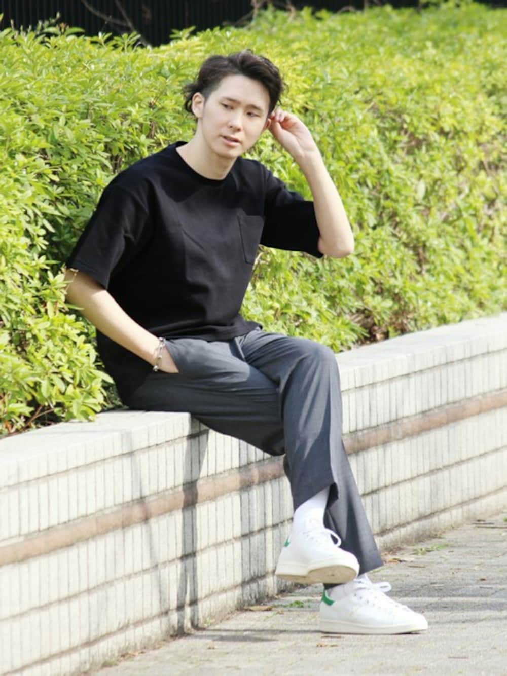 Tシャツのスタイルながらもカジュアルになり過ぎないのを意識し417らしいシックなバランス感にまとめました。