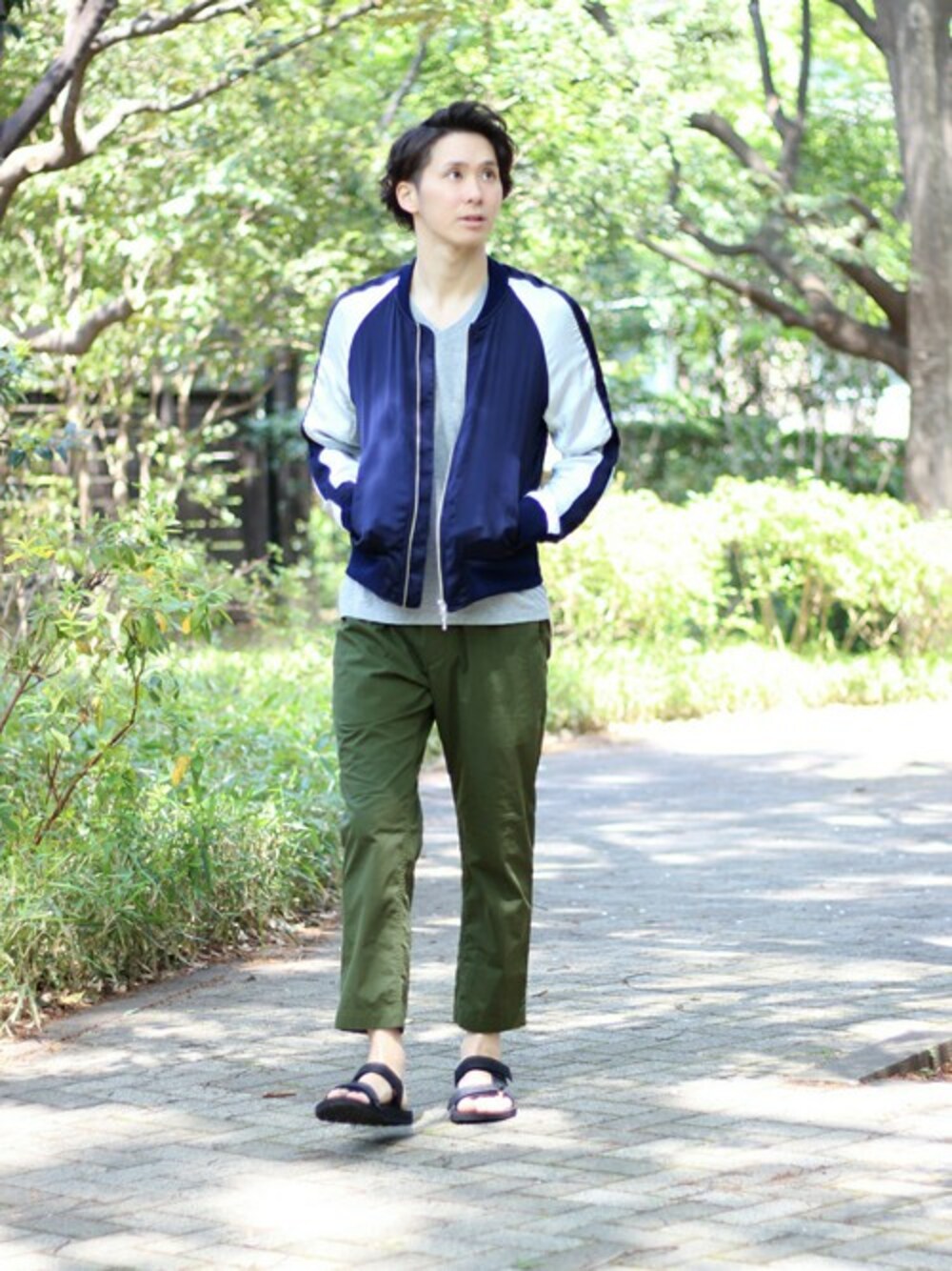 スポーツサンダルやクロップパンツをあわせて、417らしい都会的な気分をMIXしました。