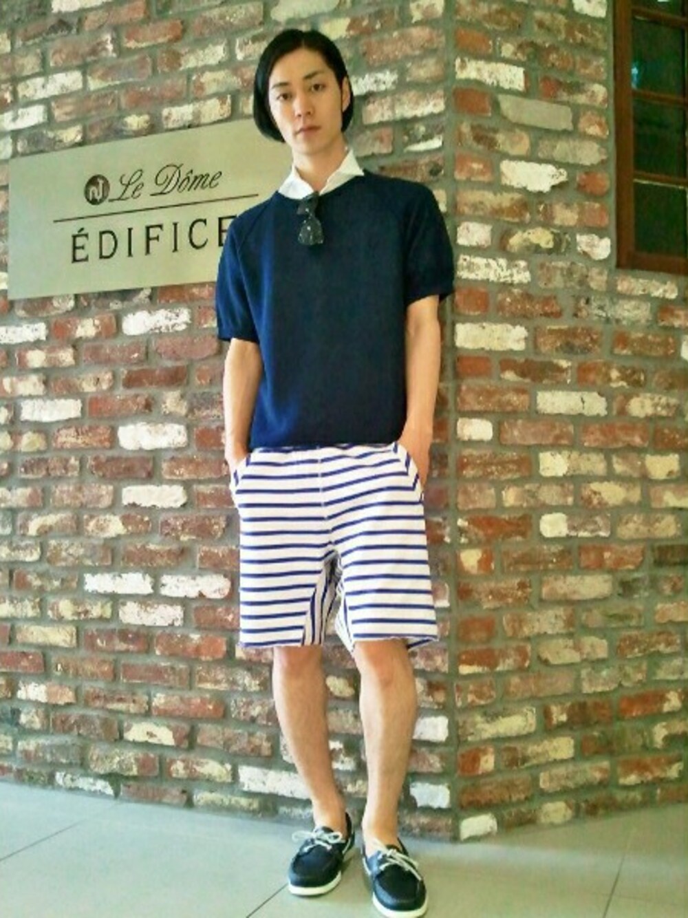 ブルー、ホワイトを基調としたマリンテイストなコーディネート。 EDIFICEらしいフレンチな雰囲気です。
