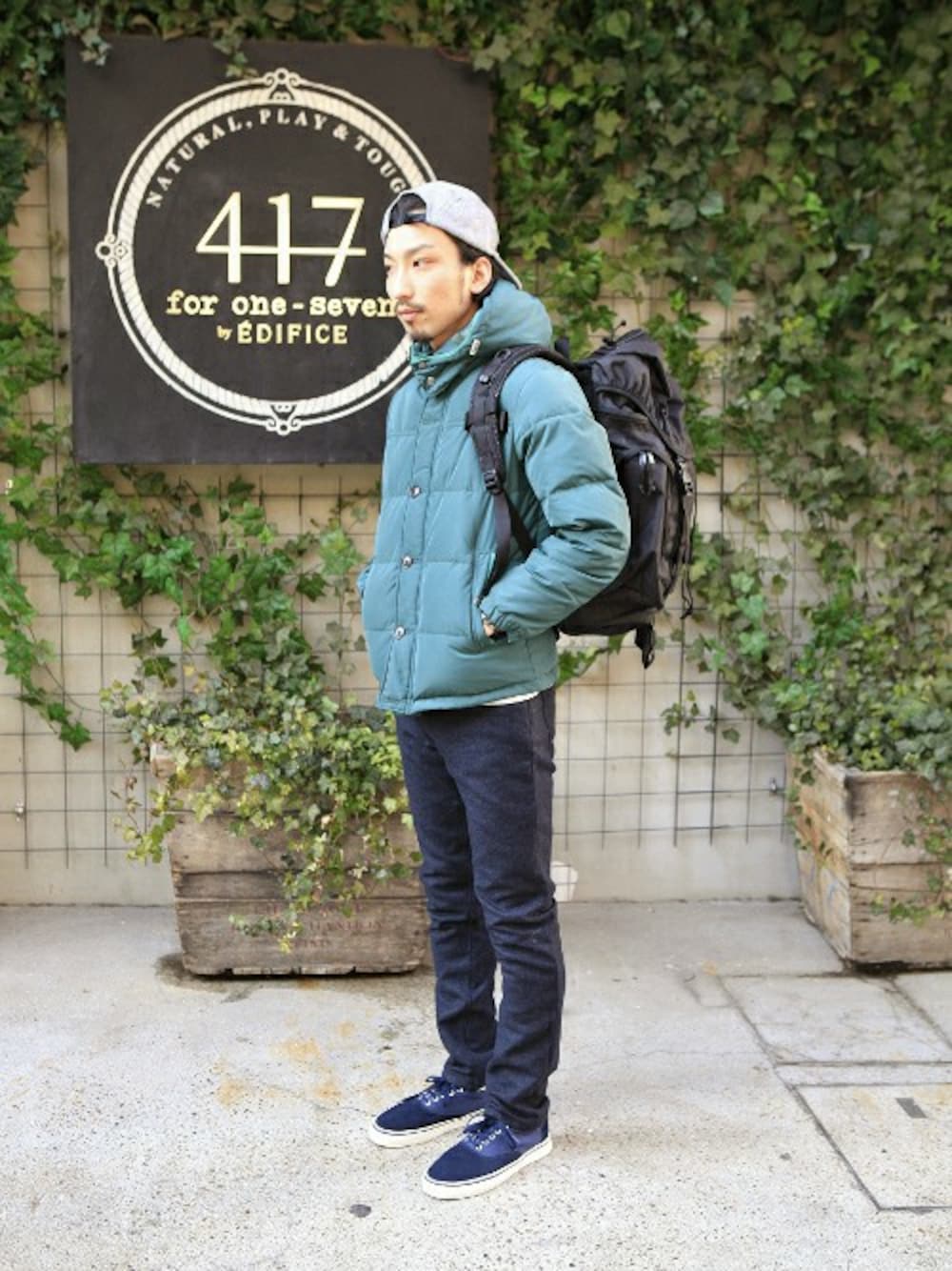 417byEDIFICE渋谷店スタッフ3のダウンジャケット/コート「◇PEオックスフードダウンブルゾン」を使ったコーディネート