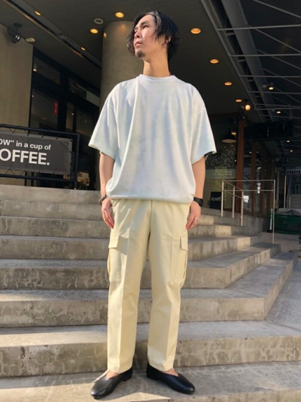 417byEDIFICE渋谷店のその他パンツ「コンパクトチノストレッチカーゴ」を使ったコーディネート