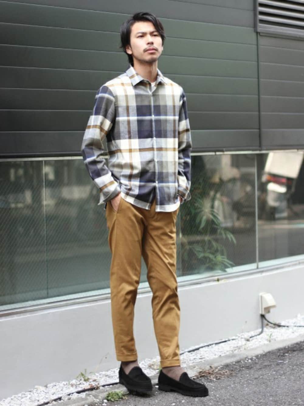 EDIFICEオリジナルのコットンフランネル生地のレギュラーカラーシャツです。一枚栄えするシャツをイメージして作成した大判のチェック柄シャツ。幼く見えるチェック柄のシャツに、細身のテーパードパンツ×レザーシューズで合わせる事で、大人カジュアルのコーディネートに。風合いの柔らかい生地感で統一させる事で一体感を演出しました。