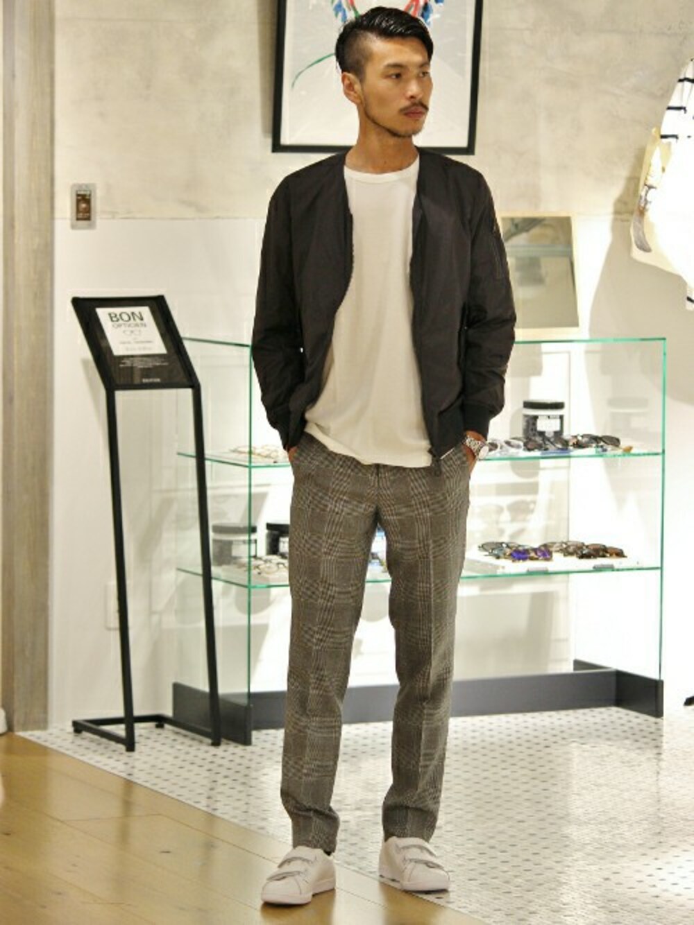 EDIFICE PR/SHINGOのMA-1「◇EDB ノーカラーライトMA-1 」を使ったコーディネート