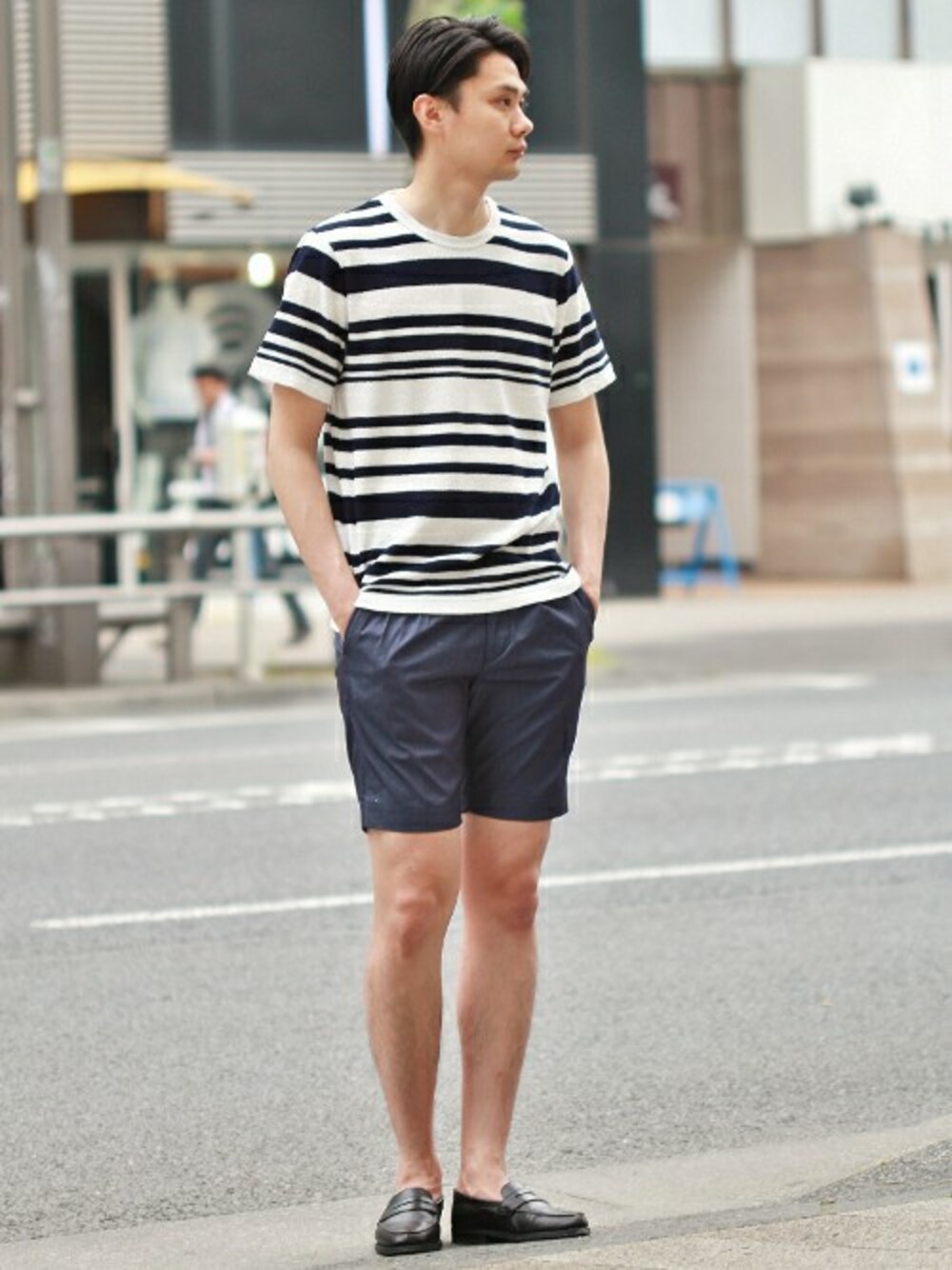 EDIFICE本社スタッフ2のTシャツ/カットソー「◇ナシジ(梨地)ボーダー C/N S/S Tシャツ」を使ったコーディネート