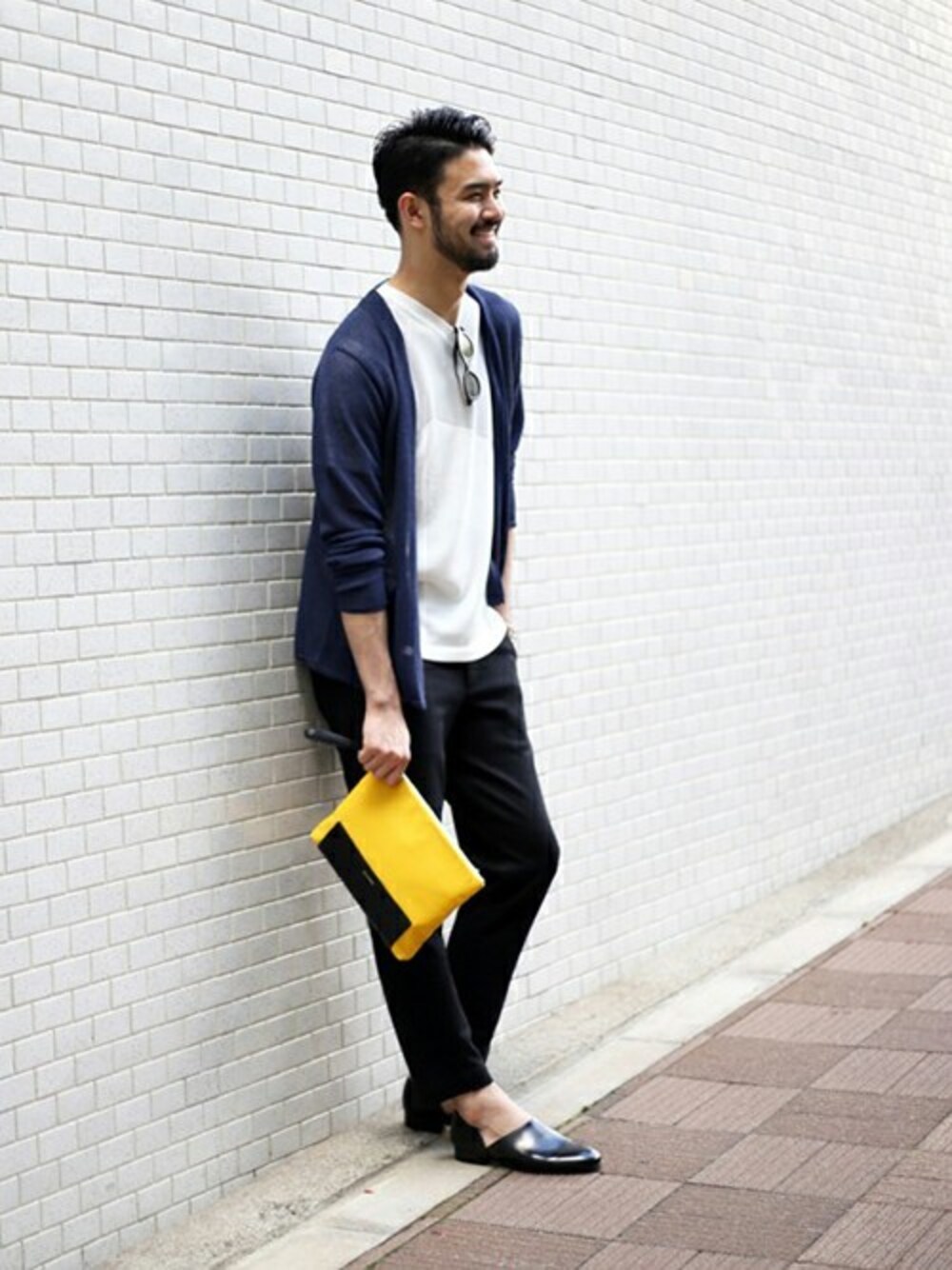 リネンカーディガンにカットソーを合わせたリラックスした休日スタイルにも、素肌部分が多く見える作りの為、自然と足元にも「抜け感」がプラス。