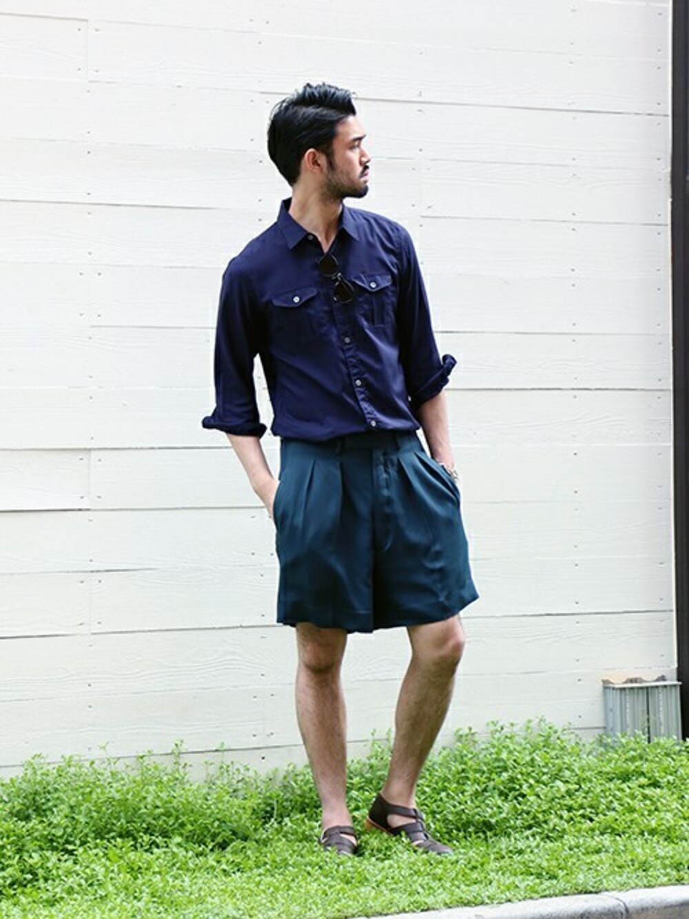骨太感のあるミリタリーシャツも、薄手で透け感のあるローンコットンとリネンの混紡素材なら、ブラウスよりも上品です。