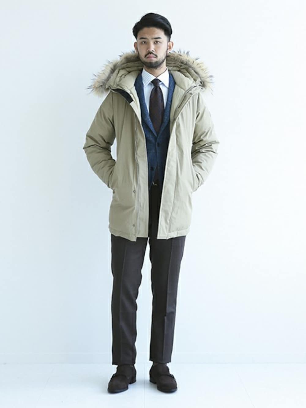 アウターに使用する高密度に織られたコットン×ナイロンのギャバジンは、ポリウレタン膜を内側に貼っているので、小雨程度であれば、水の侵入を防げる撥水素材です。また、フランス産のダッグダウンは、軽量でロフト感があり、格別な保温能力を発揮します。