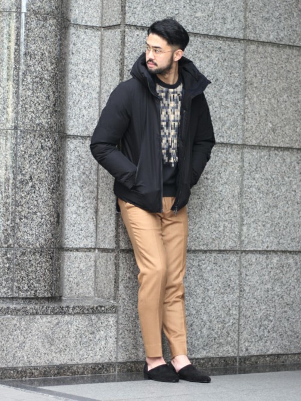 東レのストレッチナイロン生地にDermizax(ダーミザクス)という高機能フィルムを貼った表地を使用したダウンブルゾン。ブラック×ブラウンでコーディネートすることでモダンな印象を与えてくれます!