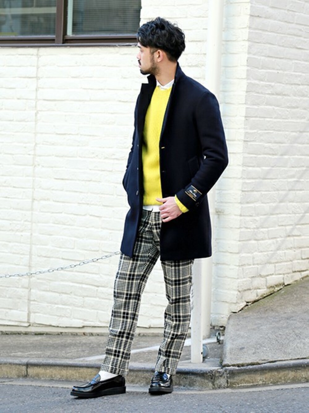 オーストラリア、ヴィクトリア地方のポートランド地区の優れたメリノウールを使用したEDIFICEオリジナルのチェスターコート。チェックパンツやローファーなどを取り入れ、今シーズンのトレンドの「ブリティッシュ」な雰囲気を演出しました!
