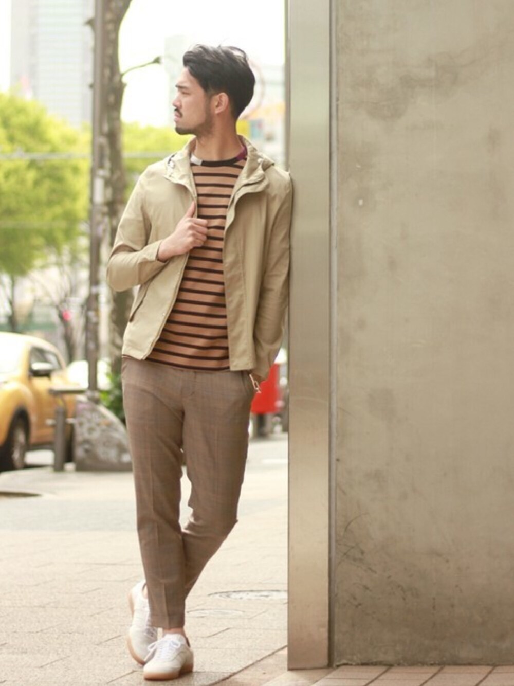 春らしくベージュのトーンでまとめたスタイルです。EDIFICEらしくシックなバランス感でまとめました!