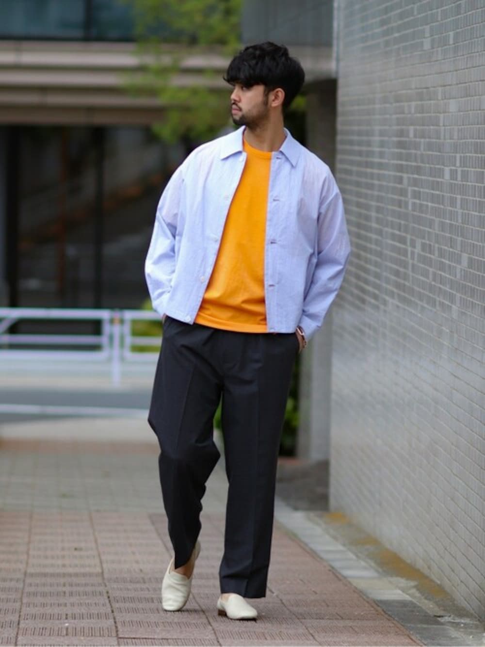 【STIR オーセンティックドレスクルーネックTシャツ 】 日本の高い技術だからこそ実現している細部に至るまでの特徴的なカッティング、様々な表情を持つ天然素材にこだわり、一枚で着るアウターシャツを新たなTシャツとして提案しているブランド。 着心地の良さを残しつつ、上着で一段上の雰囲気を纏ったハイブリッドな商品を展開しており、ドレスアップすることを想定したTシャツとして注目を集めています。 アイコンである独自のアークテールは、一枚で着た時にはアクセントになり、重ね着した時にはジャケットの裾から覗かせて遊んだりと幅広くお楽しみいただけます。 また、脇腹に付けられたポケットも一枚で着用するにあたり機能を発揮。スマートフォンなどちょっとした荷物が収まるのも使い勝手の良いポイントです。 ベーシックなクルーネックのデザインで、さまざまなアイテムとのスタイリングをお楽しみいただけます。 身長: 183cm / 普段サイズ: XL / 着用サイズ: L サイズ感: 程よくゆとりのあるサイズ感。 素材感:しっかりとしたハリのある生地感。 着心地:適度なゆとりがあり着やすい着心地。