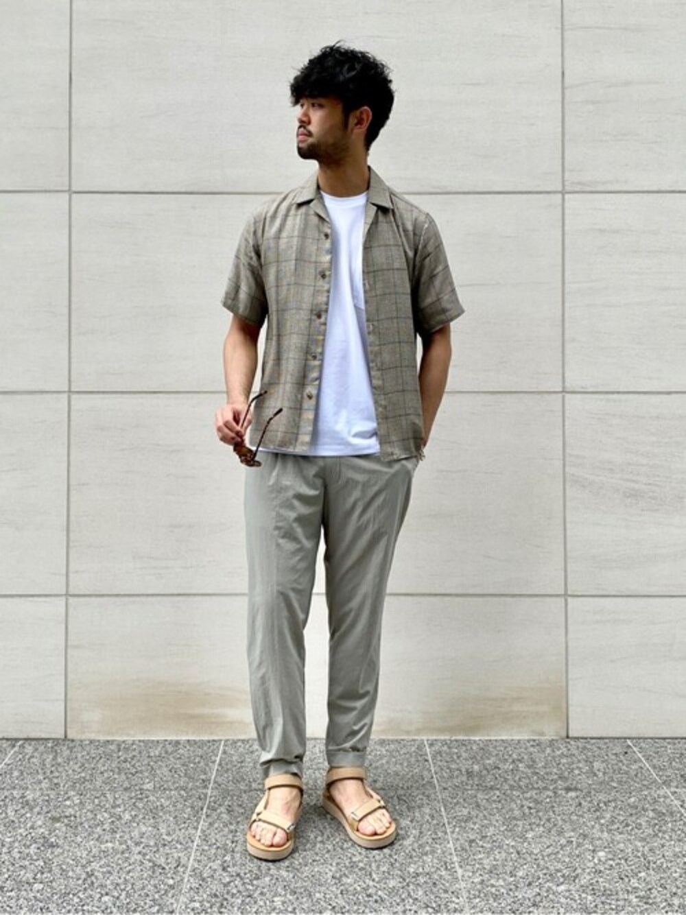 【アムンゼン オープンカラーシャツ】 エディフィスの夏の定番、オープンカラーシャツを使ったスタイリング。 適度にゆとりがあり、小ぶりな襟が大人のリラックススタイルを表現しています。 シャツをベースに淡い色味や同系色を使い、異素材を組み込んだ洗練されたスタイリングに。 身長:183cm / 普段サイズ: 50 XL / 着用サイズ:48 L / 体型:ガッチリ体型 サイズ感: 適度なゆとりのあるサイズ 素材感:微光沢のある生地 着心地: 肌触りが良く着やすい