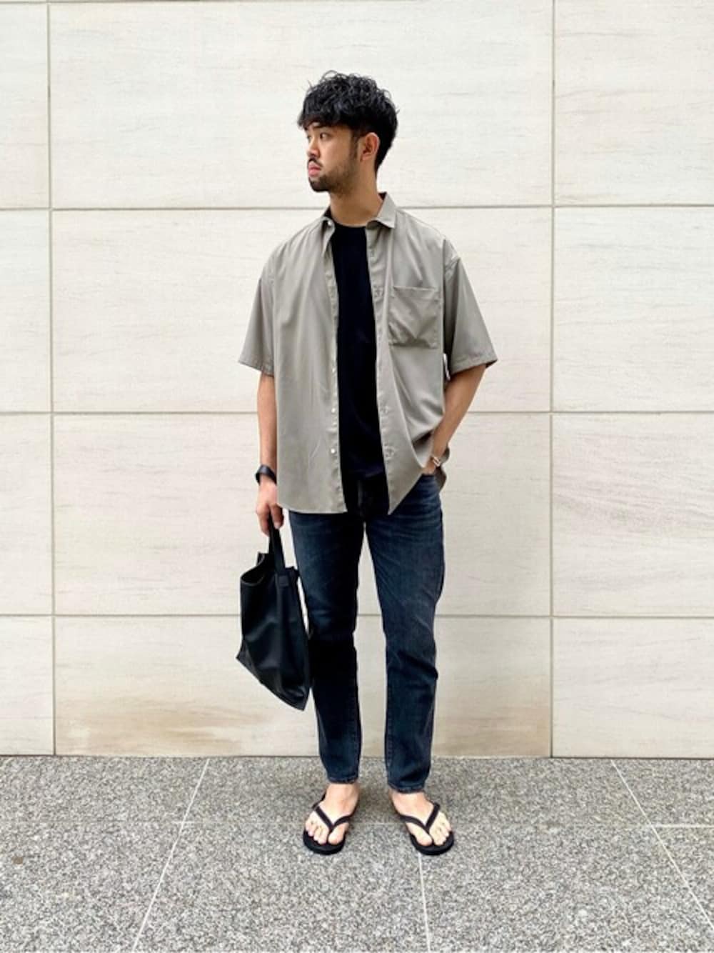【エルボースリーブ ブロード レギュラーカラーシャツ】 キュプラ / ポリエステルのブロード素材を使用 した生地感が上品なシャツ。 すそ幅の広がりを抑えめにしたことで、程よいリラックスしたサイズ感と肘丈の袖がポイントです。 ただのビックシャツではなく、大人なゆとりあるカジュアルシルエットになっています。 身長:183cm / 普段サイズ: 50 XL / 着用サイズ:F / 体型:ガッチリ体型 サイズ感: 肩が落ちるゆったりしたサイズ 素材感:滑らかな肌触りの良い質感 着心地: 肌触り良く心地良い着心地