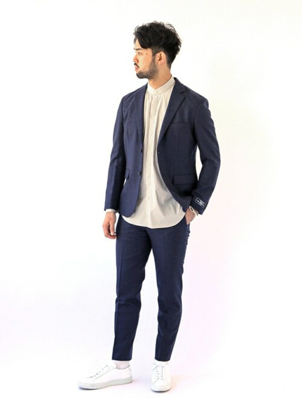 【TOPサキソニー 2ボタン セットアップ】 20代後半/身長:183cm/体型:ガッチリ/普段サイズ:XL/着用サイズ:L サイズ感:肩回りはややタイトで、重ね着や厚さのあるインナーを着るときのジャケットサイズはXLサイズが良さそう。パンツも細くスッキリしたきれいなサイズ感ですが、革靴などを合わせるのであれば、XLサイズの方が裾のバランスが良いです。 素材感:TOPサキソニーの生地はウール感が強いですが、上品に見え「ちゃんとした感」が出る印象の良い生地です。 プライべ―トはもちろん着用できますが、リモートワークなど昨今の働き方を考えれば、ビジネス使いも出来るのが人気のポイントです。 着心地:自身の体は骨格がしっかりとしているためややタイトな着心地ですが、TOPサキソニ-はポリウレタンが2%入ったストレッチ性のある素材を使用しているため、タイトでも比較的着やすい着心地となっています。細さよりも着心地の良さを選ぶならXLサイズが良い。 Instagram ⇒ towerofterada