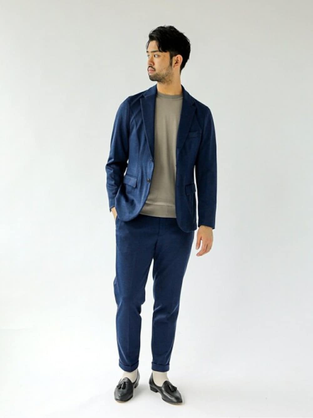 TERAのテーラードジャケット「120s TWジャージーセットアップ2ボタンジャケット【セットアップ着用可能】」を使ったコーディネート