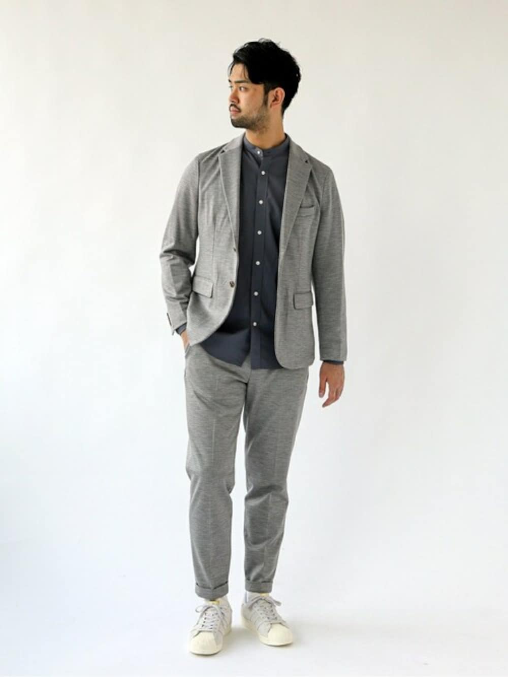 TERAのテーラードジャケット「120s TWジャージーセットアップ2ボタンジャケット【セットアップ着用可能】」を使ったコーディネート