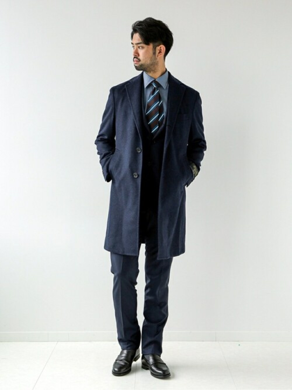 TERAのチェスターコート「140S ウール / カシミア チェスターコート」を使ったコーディネート