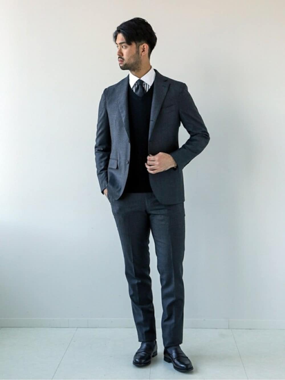 【16ゲージ Vネック プルオーバーニット】 20代後半/身長:183cm/体型:ガッチリ/普段サイズ:XL/着用サイズ:L サイズ感:自身の体型でLサイズを着て、インナーに丁度良いサイズ感で着用できます。シルエットは細身で体に沿うようなきれいなシルエットで着用できます。Vネックは深くなく浅くもない程よい深さ加減で、シャツなど重ね着に適したデザイン。フリーサイズを選べばラフでカジュアルな着こなしもして頂けます。 素材感:滑らかでキメの細かい肌触りのウールを使用したニット生地。薄手でも保温性が高く、一枚使いからジャケットのインナー使いまで、季節やシーンに合わせた幅広い使い方が出来ます。 着心地:フィット感が良く、薄手ながら保温性の高い素材で安心感ある着心地です。シルエットが細身なので着方に合わせてサイズを変えて着用できるので、リラックス感ある着心地お好きな方はXLからフリーサイズを選ばれると良いかと思います。 ◆Instagram ⇒ towerofterada Instagramも更新しております。 お気軽にフォロー、コメントもお待ちしております。
