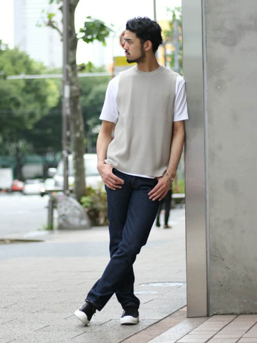 WKED(ウィークエンド)新作ニットベスト 。今年らしいスポーツ気分をMIXしたニットベストとのレイヤードスタイルです。サイジングもゆったりとしたリラックス感のある着用感となっています。 いつもとは違う夏のレイヤードスタイルを楽しんでみてはいかがでしょうか。