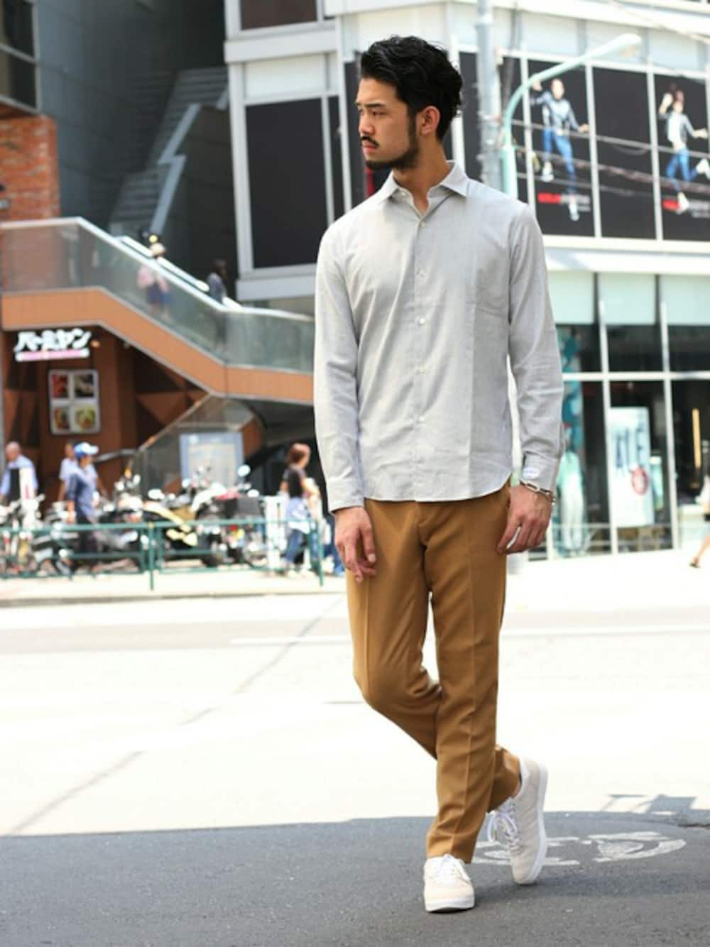 柔らかな風合いが特徴のラムウールを使用したスラックスパンツはカジュアルな単品使い~セットアップスタイルにと幅広く着まわしが可能です。 足元には注目の別注GAZZELEを合わせました!
