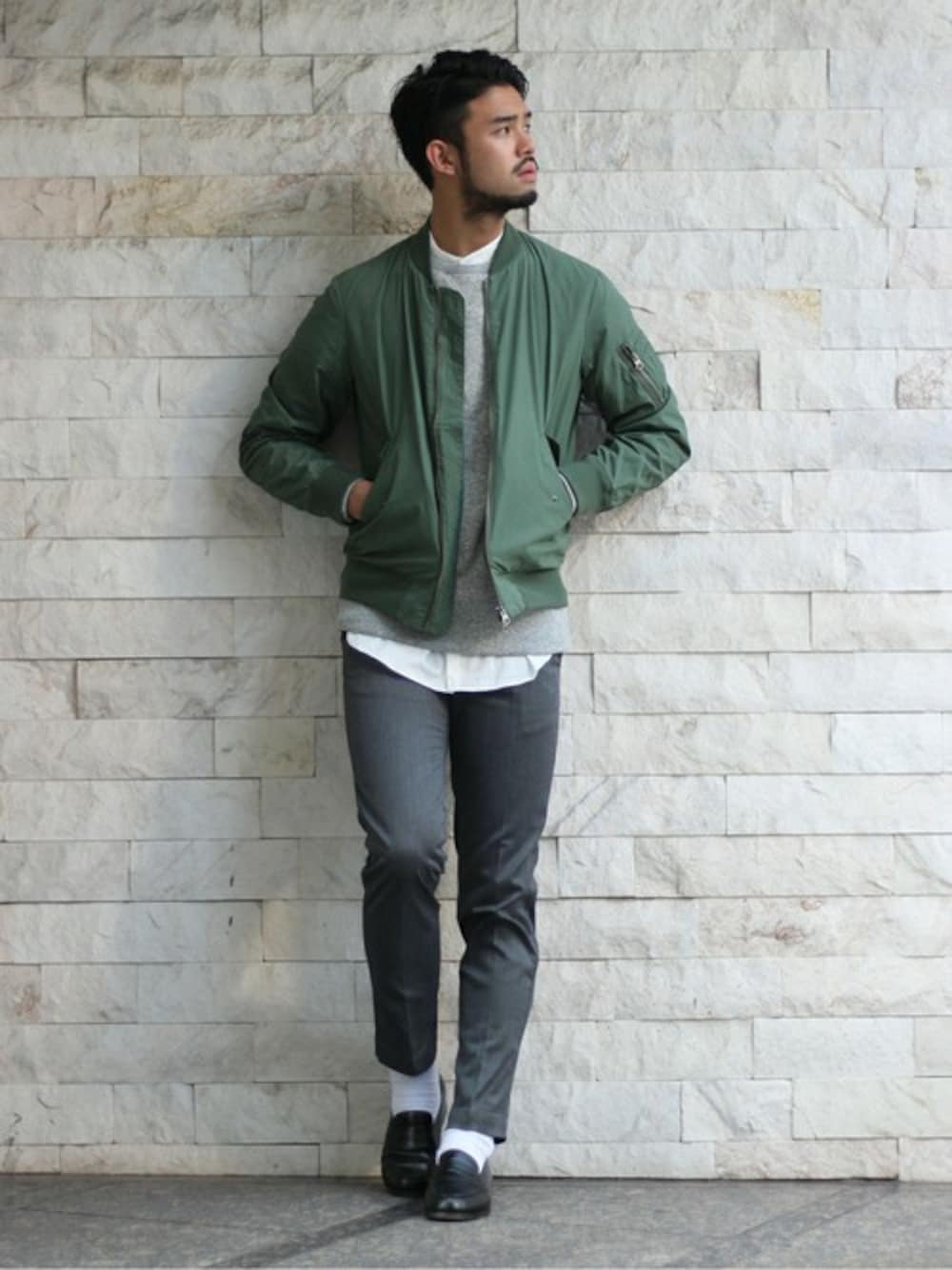 都会的なデザインのMA-1ブルゾン。スラックスパンツなどのきれい目なアイテムとの相性も良く、EDIFICEらしいミリタリーアイテムへと仕上がっています。