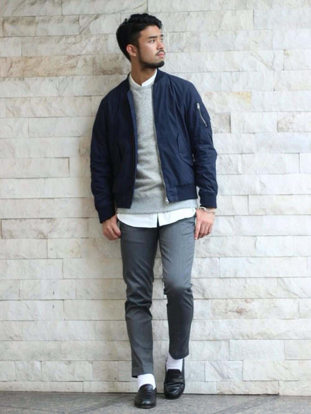 都会的なデザインのMA-1ブルゾン。スラックスパンツなどのきれい目なアイテムとの相性も良く、EDIFICEらしいミリタリーアイテムへと仕上がっています。