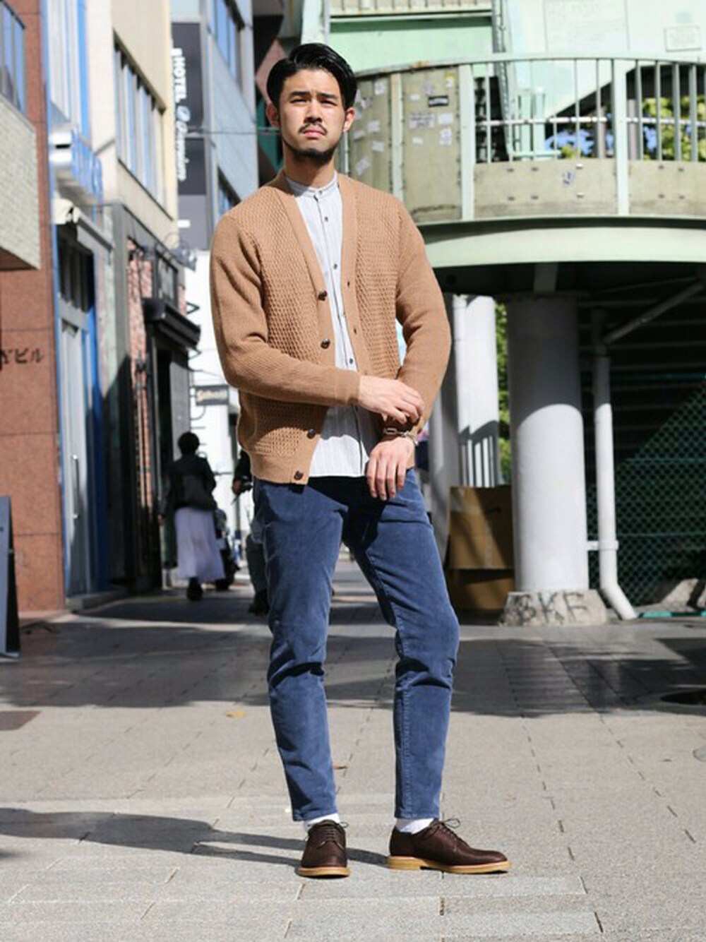 秋冬シーズンらしさのでるキャメルのニットカーデにバンドカラーシャツを合わせedificeらしくシックな雰囲気にまとめました‼︎