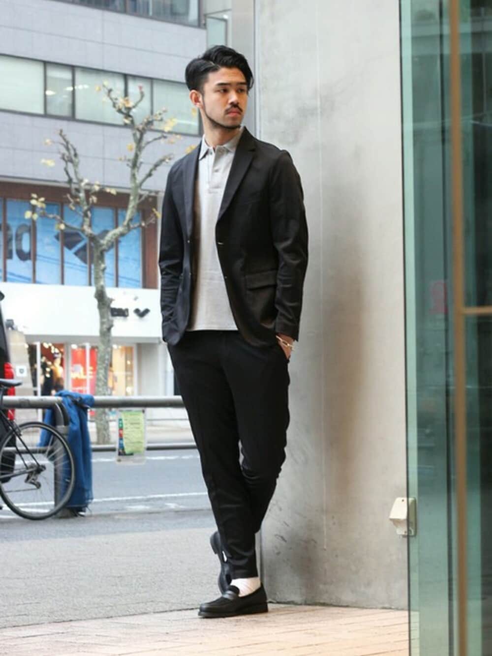 セットアップのインナーには今年らしくクリーン且つスポーティなポロシャツを!